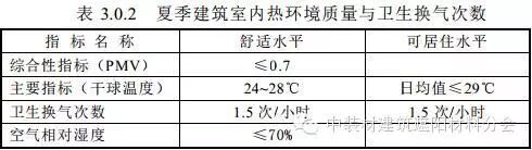 3.0.2夏季建筑室内热环境质量指标与卫生换气次数应符合表3.0.2。